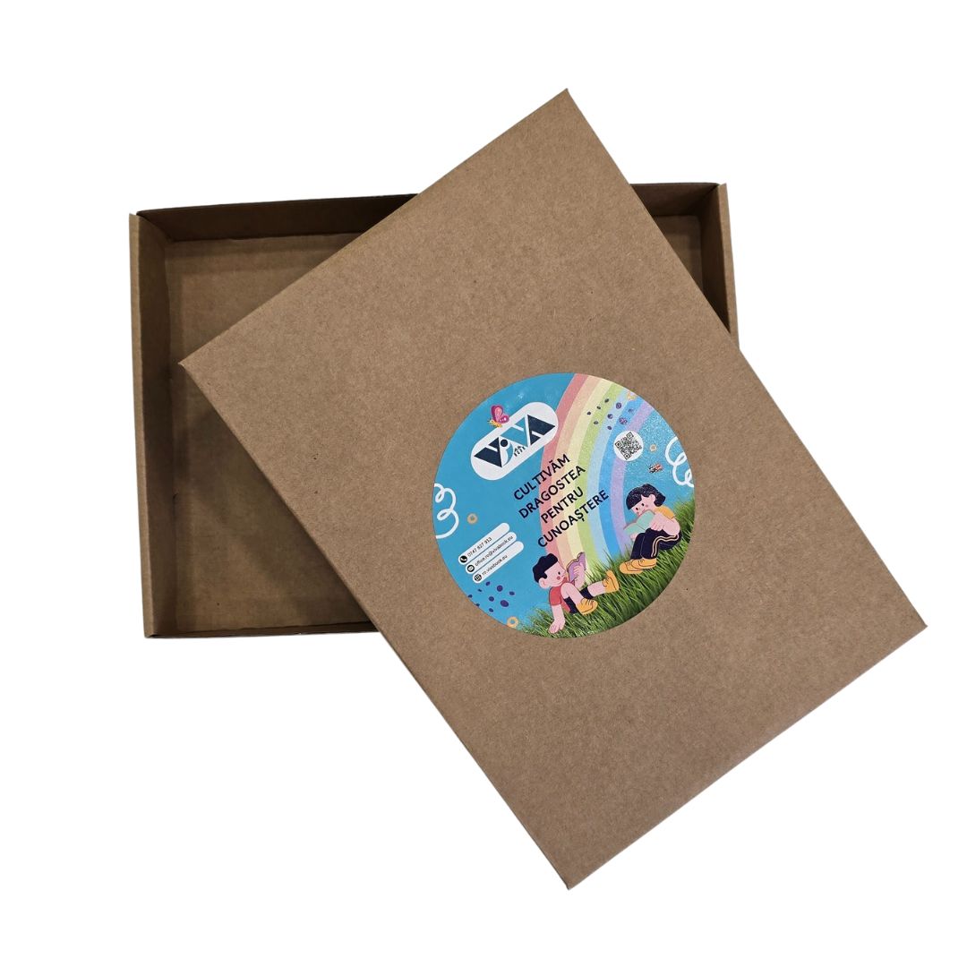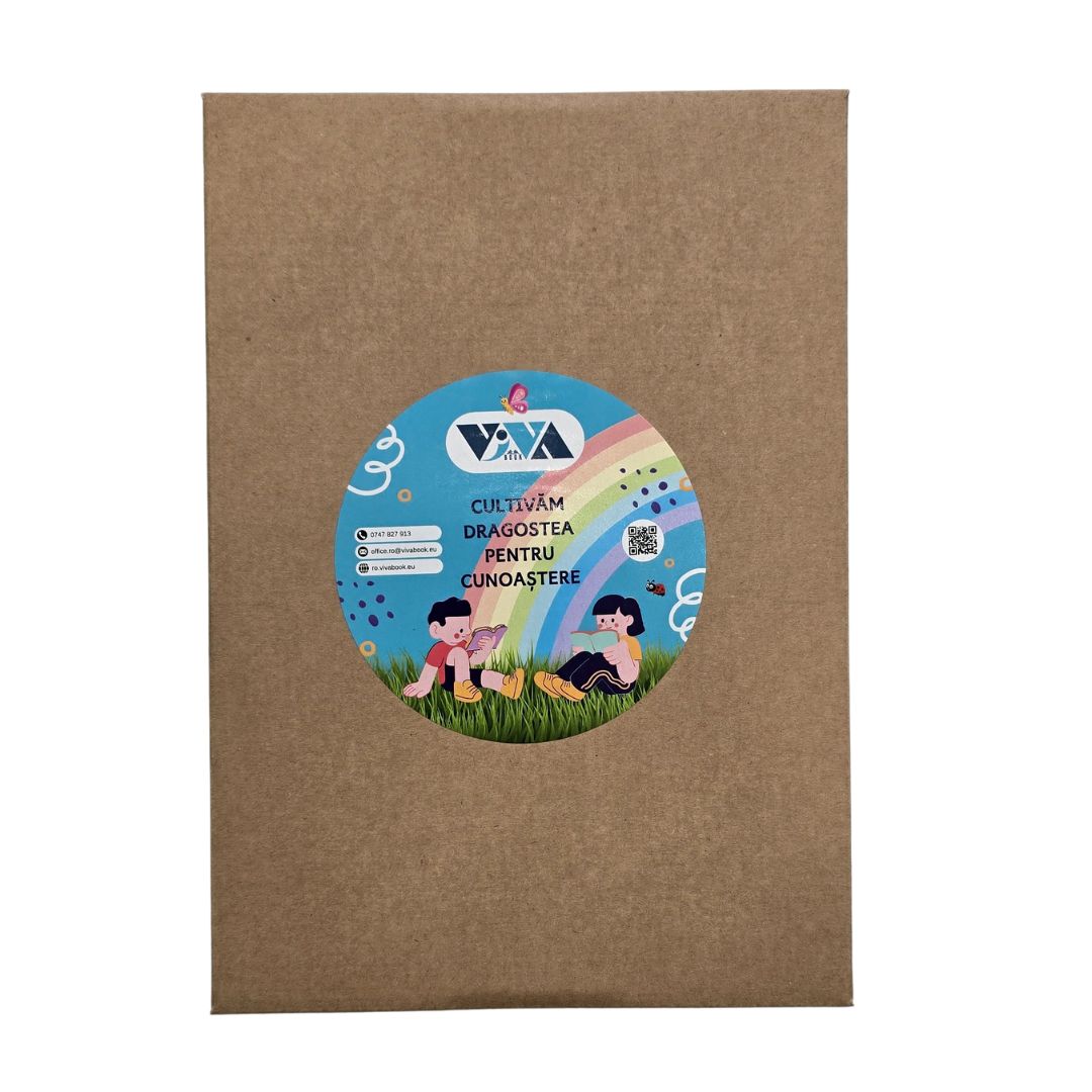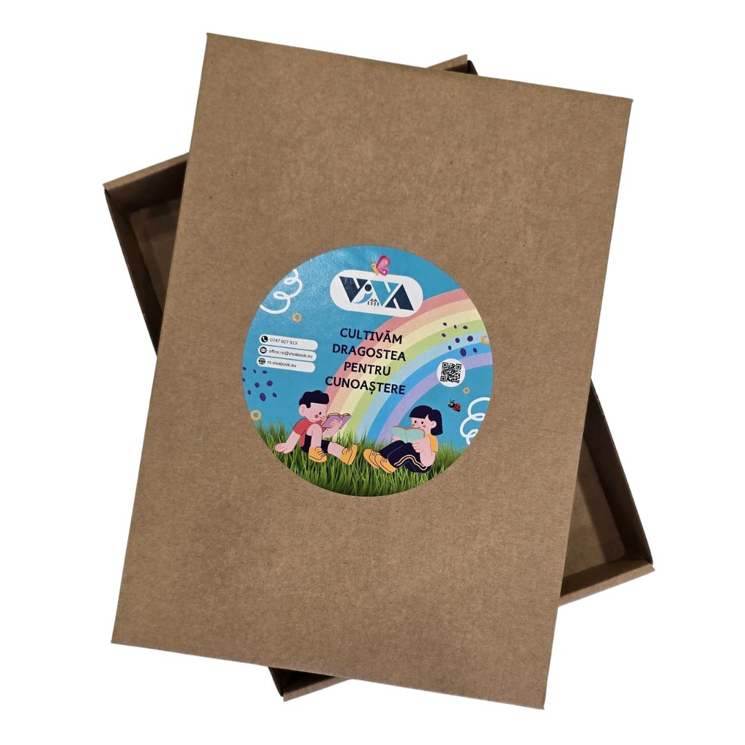 „Cutia cadou Vivabook A5” este aleasă special pentru colecțiile și seturile noastre pentru copii, iar eticheta branduită Vivabook îi oferă un aspect complet și festiv – gata de dăruit, fără ambalaj suplimentar.